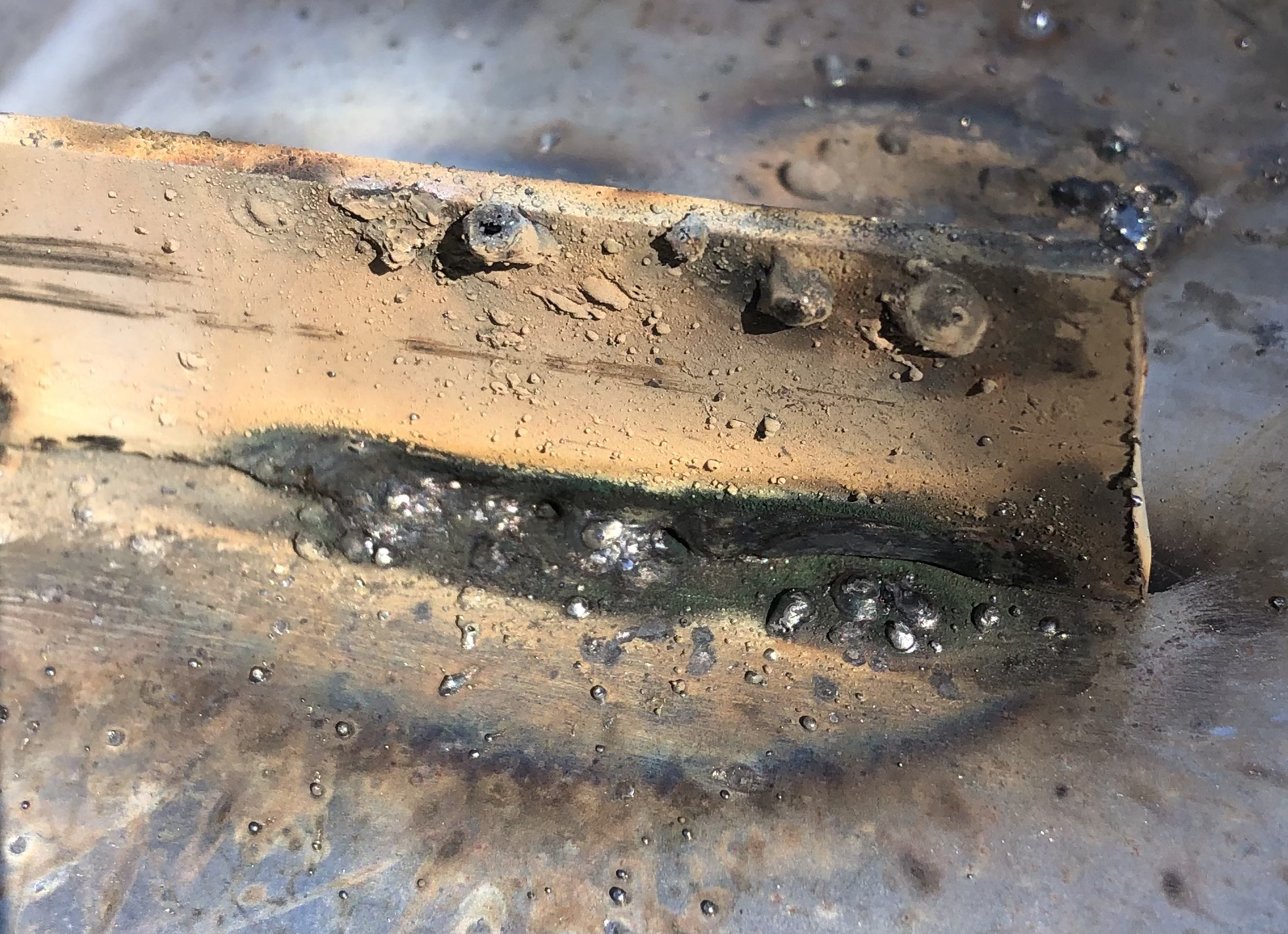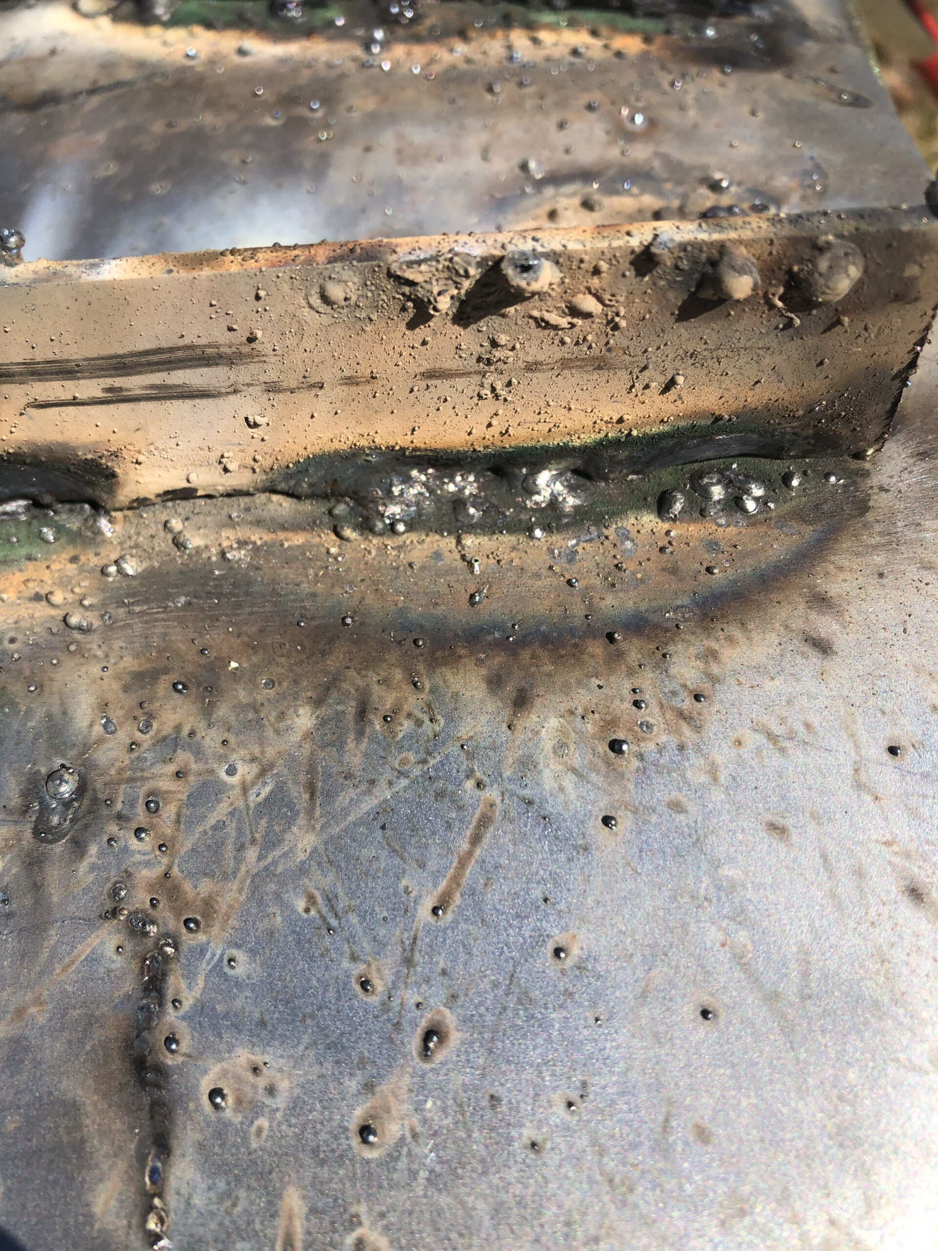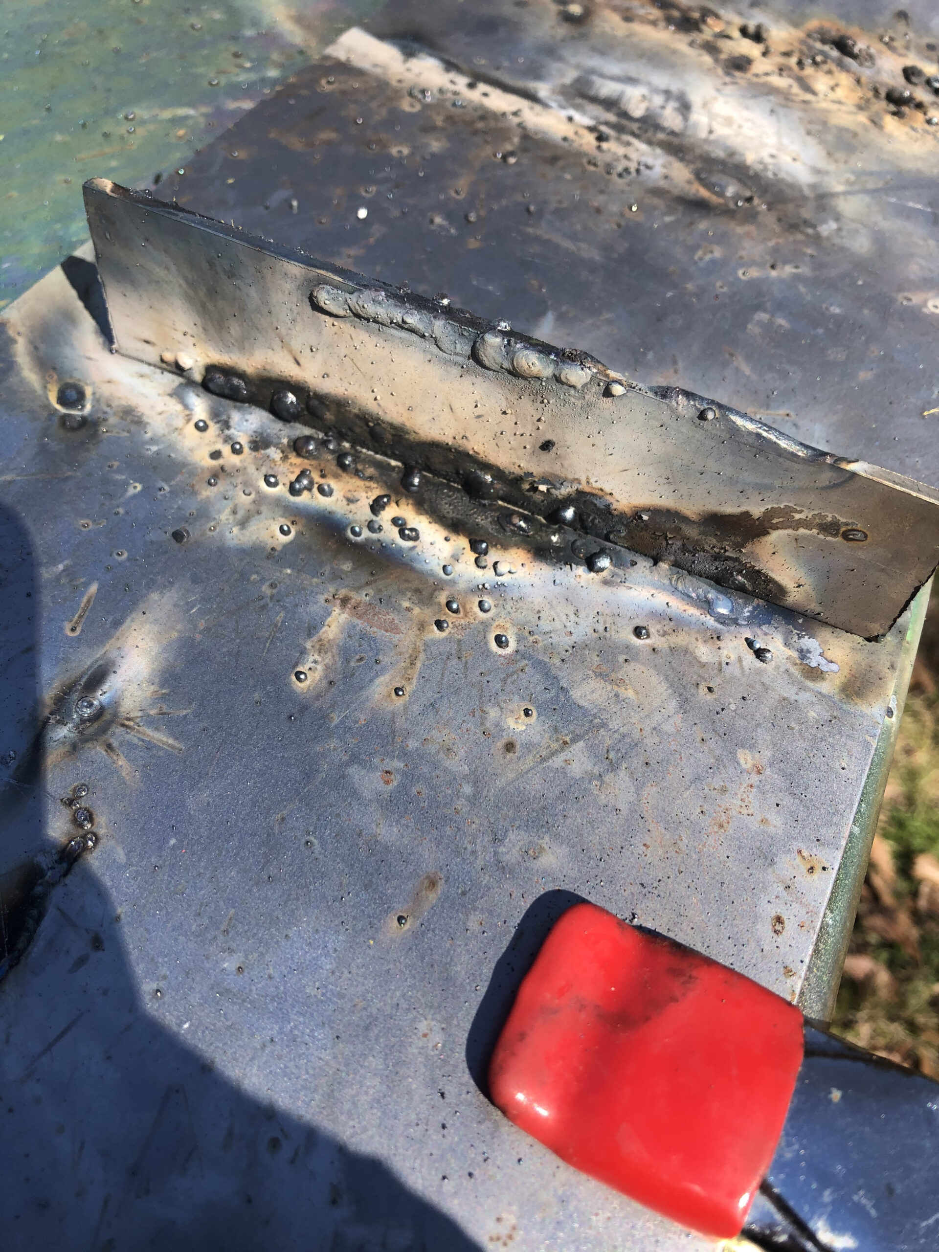 There was a lot of sticking and splattering and playing around with amps on the Hobart machine, but eventually I managed some not-too-ugly welds. But then, what do I know?
