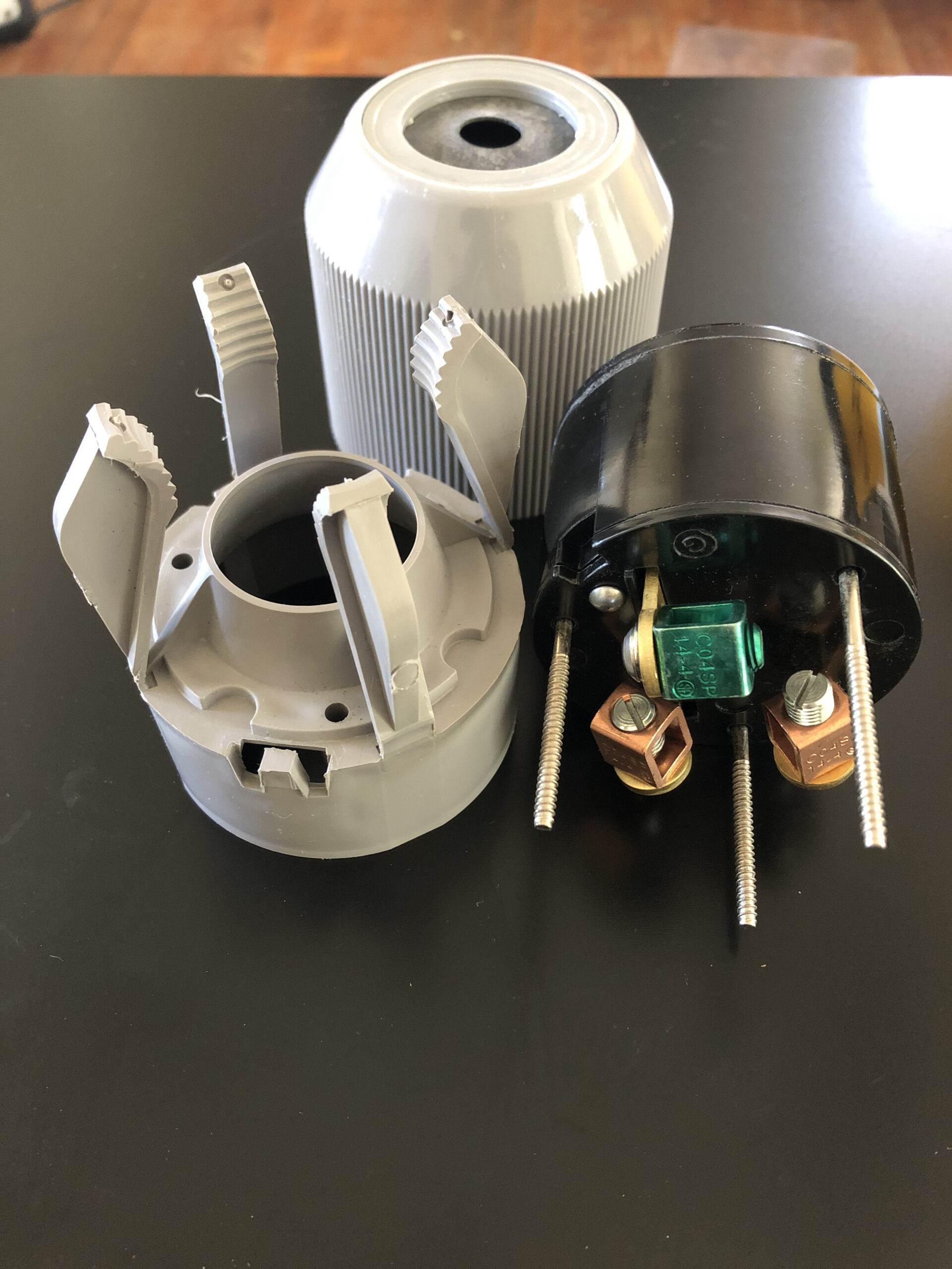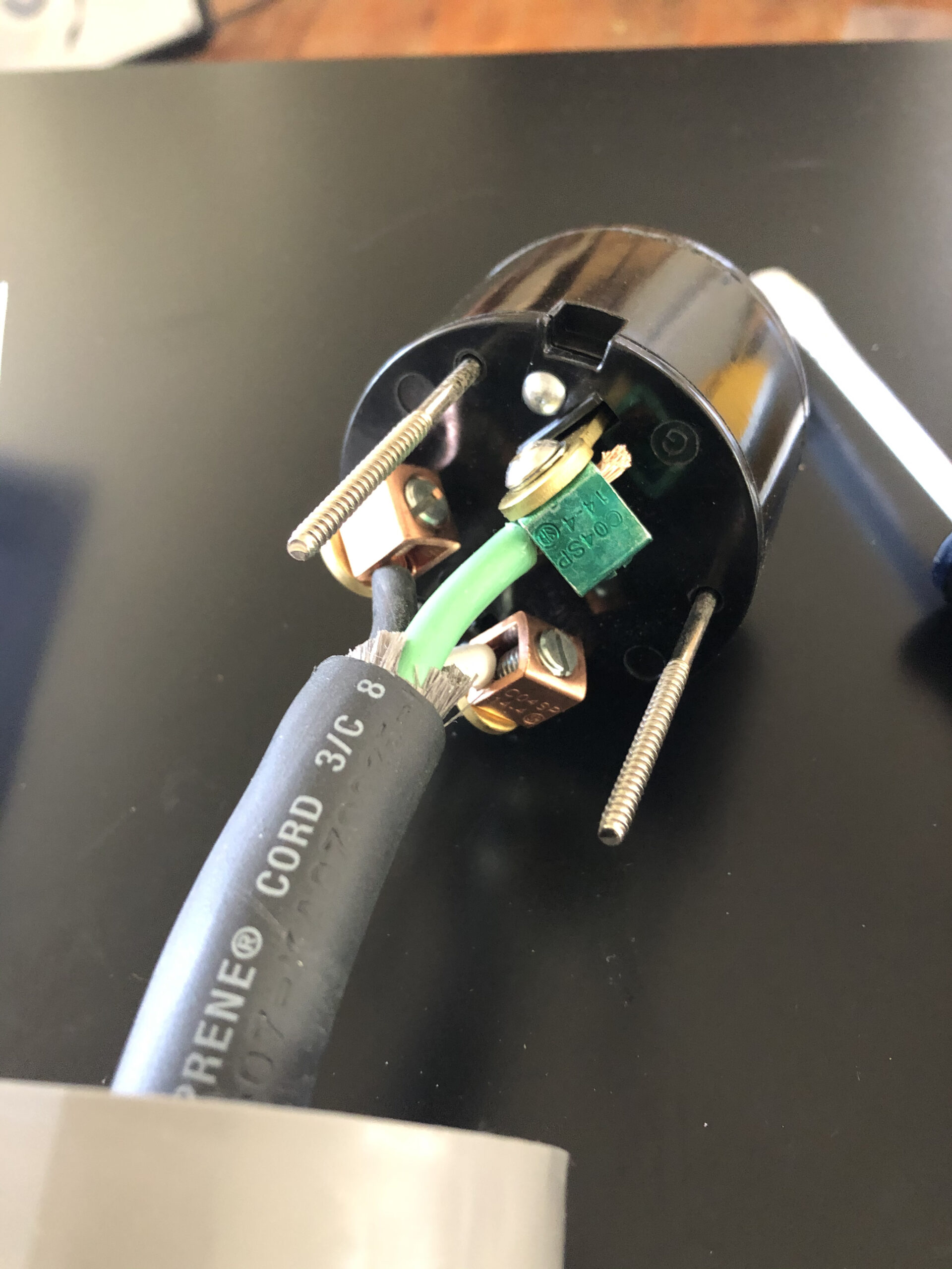 Here is where I learned that all extension cords are not created equal. Au contraire. For one thing, the cable itself ran around two dollars a foot (8/3 wire, whatever that is). But what really knocked me out were the plug and receptacle that go on the ends—70 bucks apiece! I assembled everything myself.
