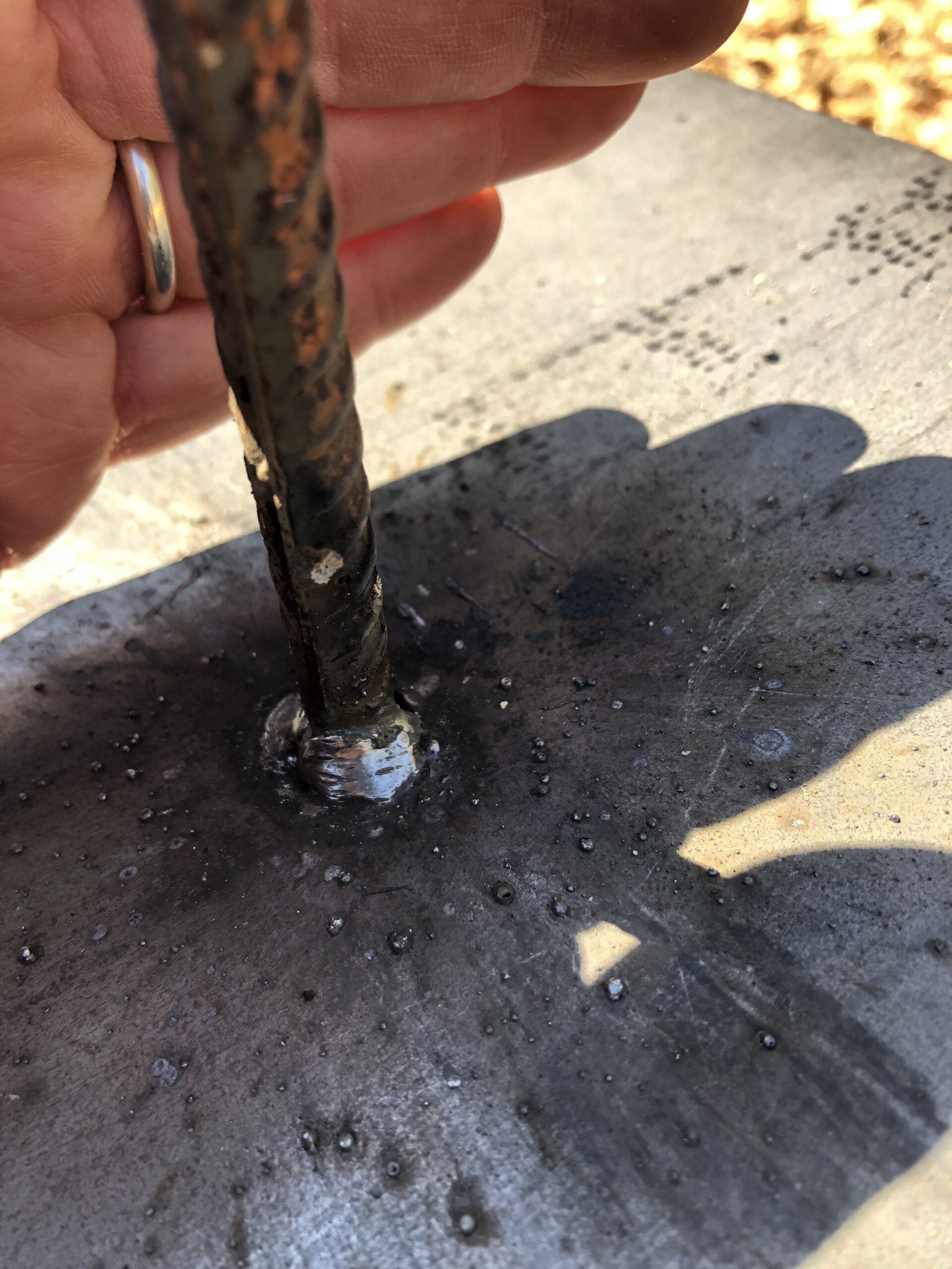 I’ve already gone into the poor design of the steel plates on the piers for the first container. But the realization hadn’t hit me when I began welding the plates to the rebar sticking up through them.